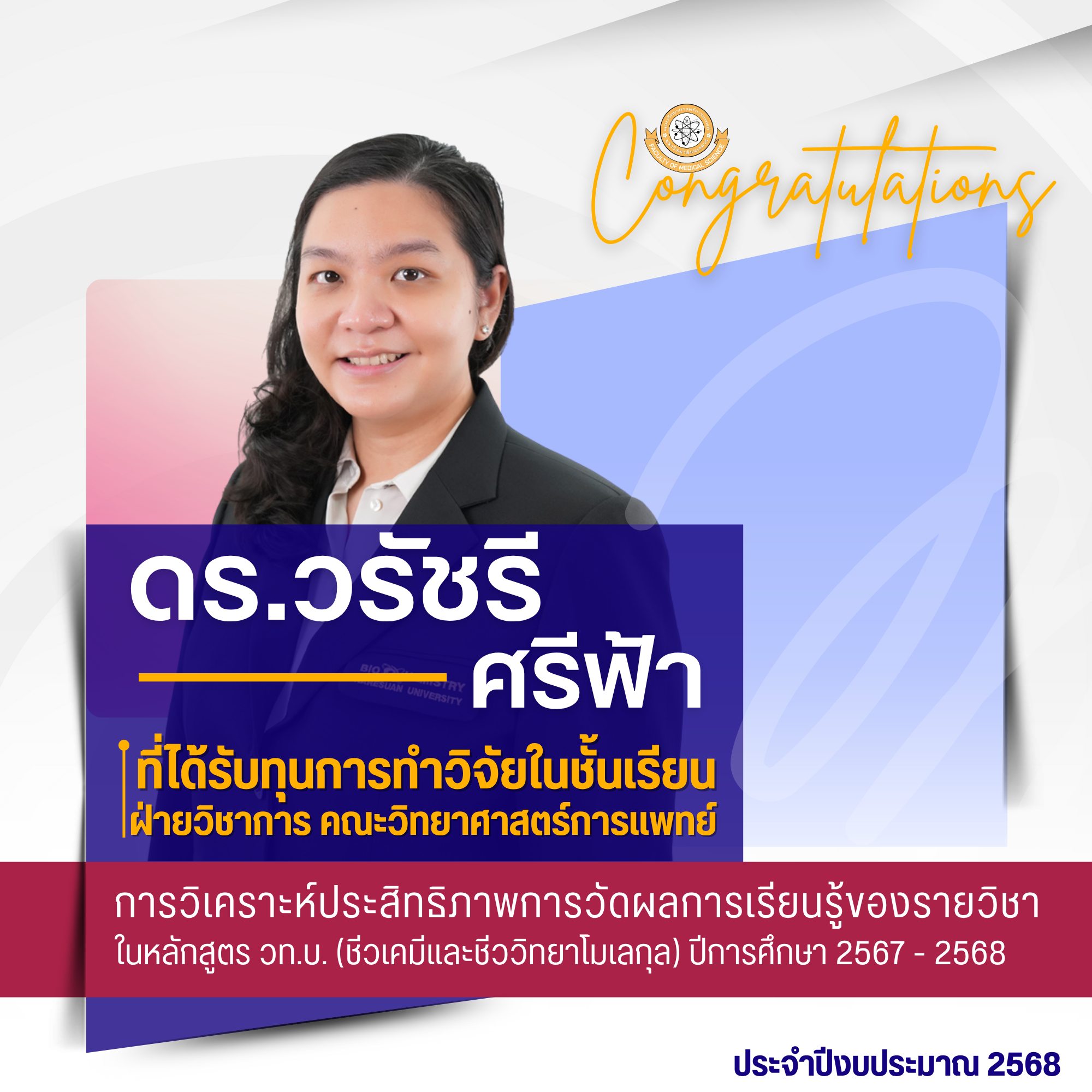 ที่ได้รับทุนการจัดทำสื่อการเรียนการสอน และการทำวิจัยในชั้นเรียน ฝ่ายวิชาการ คณะวิทยาศาสตร์การแพทย์ ประจำปีงบประมาณ 2568