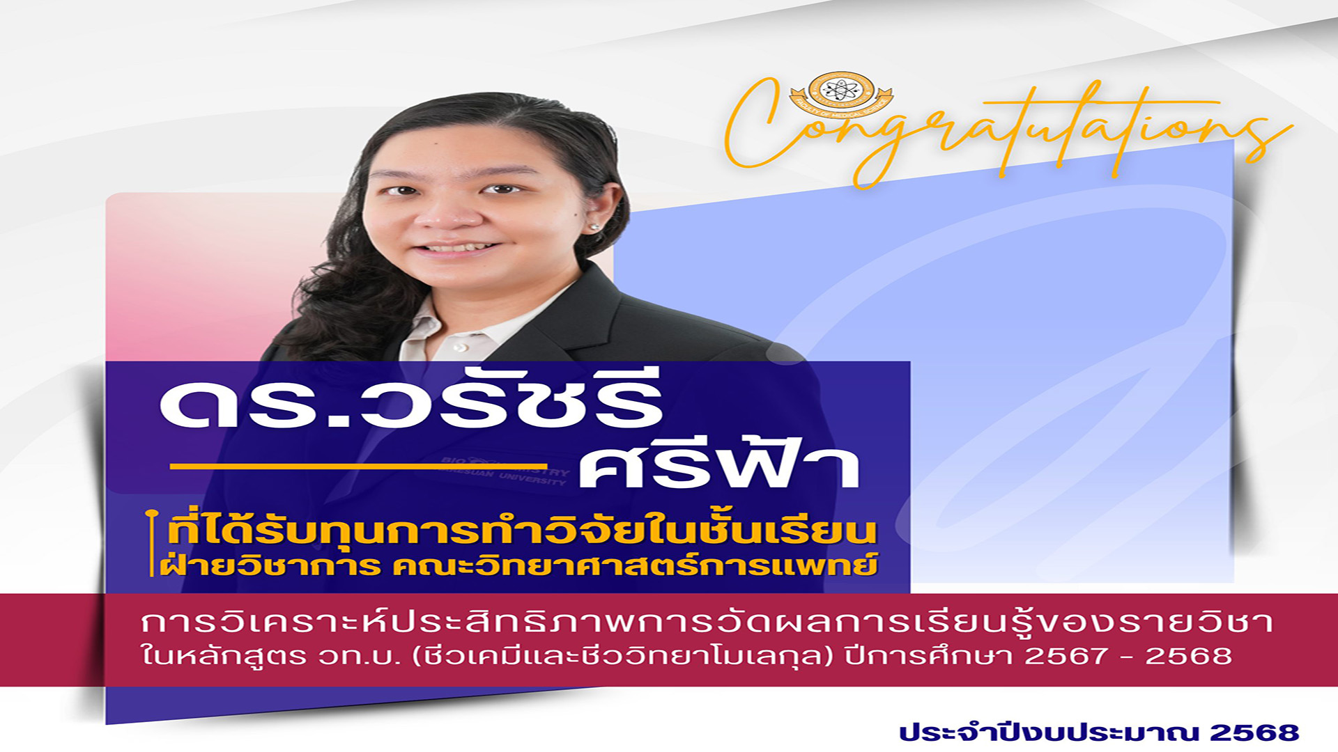 คณะวิทยาศาสตร์การแพทย์ ขอแสดงความยินดีกับ ดร.วรัชรี ศรีฟ้า
